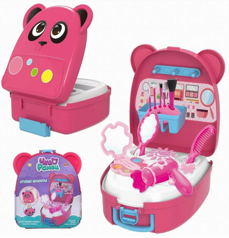 Игровой набор "Мой милый медвежонок-панда "Студия красоты" из серии "Чудо-ранец"-просто мечта любой девочки. В него включены предметы для увлекательной игры, которые помогут ей почувствовать себя настоящей модницей. Это целый портативный салон красоты! С помощью дополнительных элементов набора чемоданчик легко преобразуется в миниатюрный салон красоты с необходимыми инструментами и аксессуарами. Закрепив на нем ремень, мы получим удобный ранец. Подробный состав набора и инструкция по сборке указаны на упаковке, сохраняйте ее.