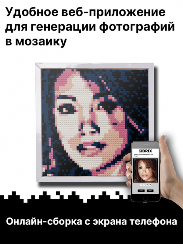 8+. Фото-конструктор Qbrix – это то, что Вам нужно! Перед вами пазл нового поколения, который позволит превратить любую фотографию в картину в стиле пиксель-арт. Для этого понадобится выполнить всего 3 простых шага: 1. Купить конструктор Qbrix; 2. Загрузить свою фотографию на официальный сайт и по уникальному коду из коробки получить инструкцию по ее сборке; 3. Собрать пазл и повесить его на стену при помощи коробки-рамки, наслаждаясь тем, как классно выглядит любимое фото! А самое главное: Qbrix можно пересобирать столько раз, сколько захотите. Надоела картина? Разобрали, выбрали новую фотографию, загрузили на сайт, собрали, повторяйте по желанию.