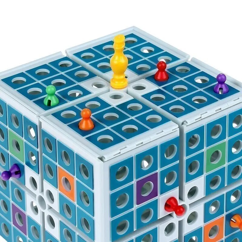 6+.3D-cтратегия начального уровня. Весёлая и интересная логическая игра с очень простыми правилами и захватывающей динамикой. Сражение между 2-4 игроками идет не на плоском игровом поле, а на 5 плоскостях одновременно. Нужно "защелкнуть" фишки противников внутрь куба, убирая их с игрового поля. Единственный оставшийся на поверхности становится Царем Куба! Есть 2 способа избавиться от оппонентов: Пройти своей фишкой по клетке, где стоит чужая фишка, вдавив ее внутрь куба. Добраться до центра верхней плоскости, где расположена Царь-фишка "Король". В таком случае игрок получает право перевернуть куб на любую сторону, уничтожив/вдавив таким образом все фишки, которые располагались на стороне, которая оказалась внизу! Однако, не увлекайтесь - каждый из ваших противников тоже хочет стать Царем Куба! Цель игры - остаться последним и единственным на поле. Игровое поле-куб сделано из высококачественного прочного пластика. Одна из сторон куба открывается для доступа внутрь - там удобно хранить все элементы игры, ну и конечно через эту дверцу в конце игры можно достать все утопленные фишки. В комплекте: игровое поле в форме куба 19х19х19см, фишка "Царь", 16 фишек (4 цвета х 4), игральный кубик 1-2-3, правила игры, мягкая подкладка на стол с лого Squashed. Стратегическая игра для 2-4 игроков Время игры: 10-15мин.