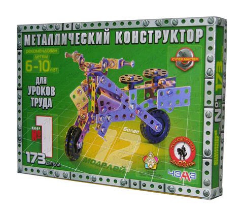 В набор №1 металлического конструктора входит 173 детали, гаечный ключ и отвертка. С помощью инструкции с иллюстрациями ребенок сможет собрать 12 предложенных вариантов моделей. Конструктор располагается в удобном ящичке с отделениями, детали не перепутаются и не потеряются.Металлический конструктор из серии "Для уроков труда" можно использовать не только для занятий в школе. Ребенок с удовольствием будет придумывать новые варианты сборки, а используя дополнительные детали из аналогичных конструкторов вместе со своей неуемной фантазией, конструирование может стать любимым занятием Комплектация Детали конструктора (173 шт.); Инструкция по сборке