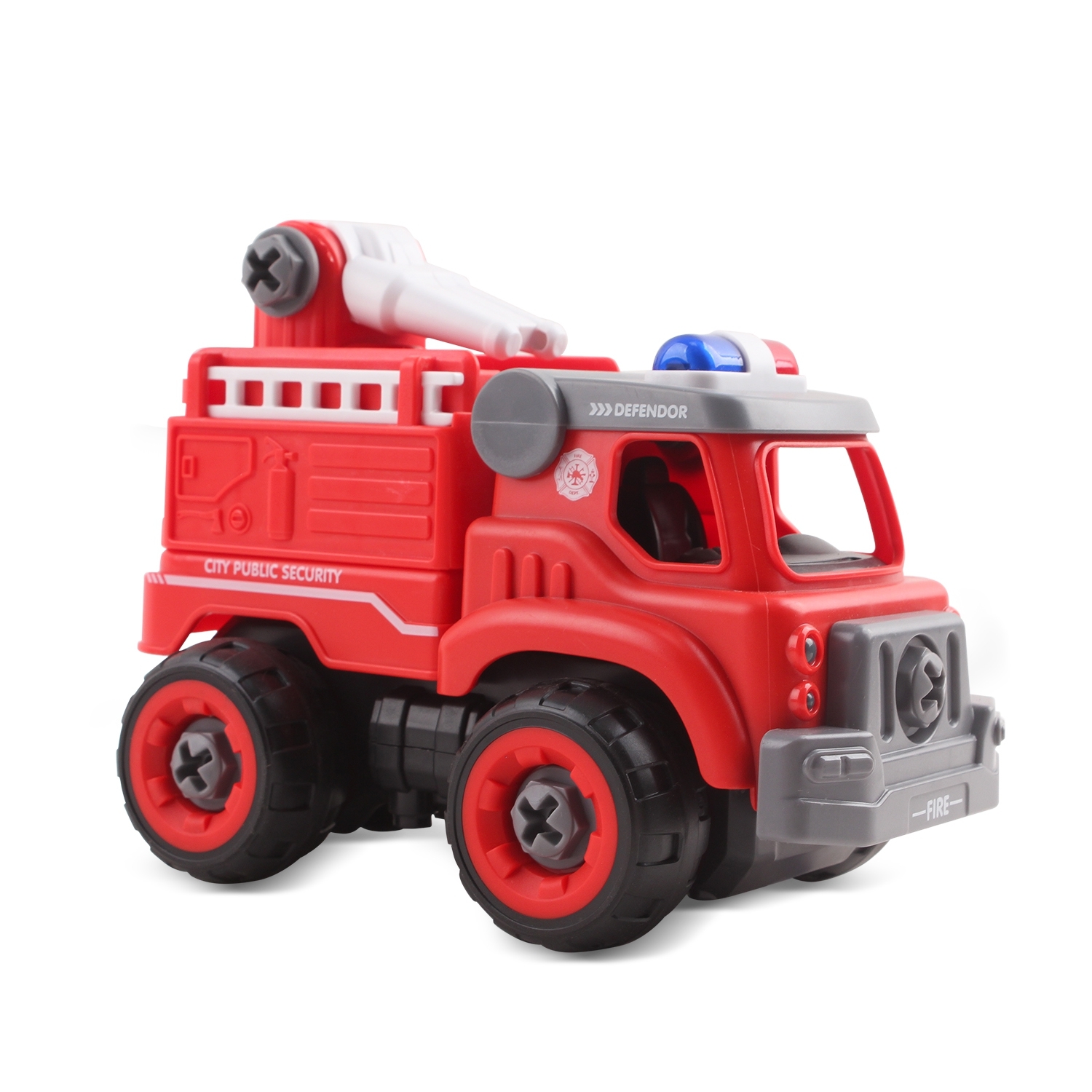 Развивающая функциональная игрушка научит вашего ребенка мастерить своими руками. Из 31 детали конструктора нужно собрать модель пожарной машины. Это занятие развивает пространственное мышление, мелкую моторику, память. Ребенок задействует творческий подход. Готовая машина работает на батарейках. Она подвижна, издает звук сирены. Набор комплектуется отвертками и шурупами. Сборка осуществляется по схеме. Игрушка подходит детям от 3 лет.