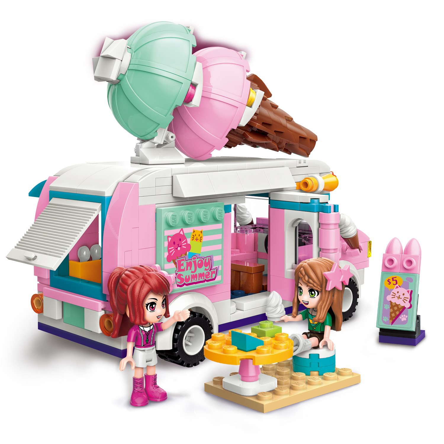 Купить Конструктор Qman серия Cherry Передвижное кафе-мороженое 388 деталей в интернет-магазине Умно-Разумно