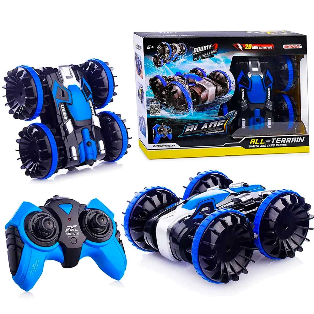 6+.Хит летнего сезона - радиоуправляемая машинка амфибия «Blade» 666-802A! Если Вы хотите испытать по-настоящему захватывающие ощущения от радиоуправления, то амфибия станет верным решением! Ведь модель обладает не просто высокой проходимостью, она способна преодолеть любое дорожное покрытие: асфальт, газон, камень, песок и даже воду! Blade - это совмещение современного функционала и стильного дизайна. Особенности: - высокая скорость; - большая проходимость; - едет по воде; - трюковый перевертыш. Управление: - вперед; - назад; - вращение по часовой стрелке; - вращение против часовой стрелки; - демонстрационный режим.
