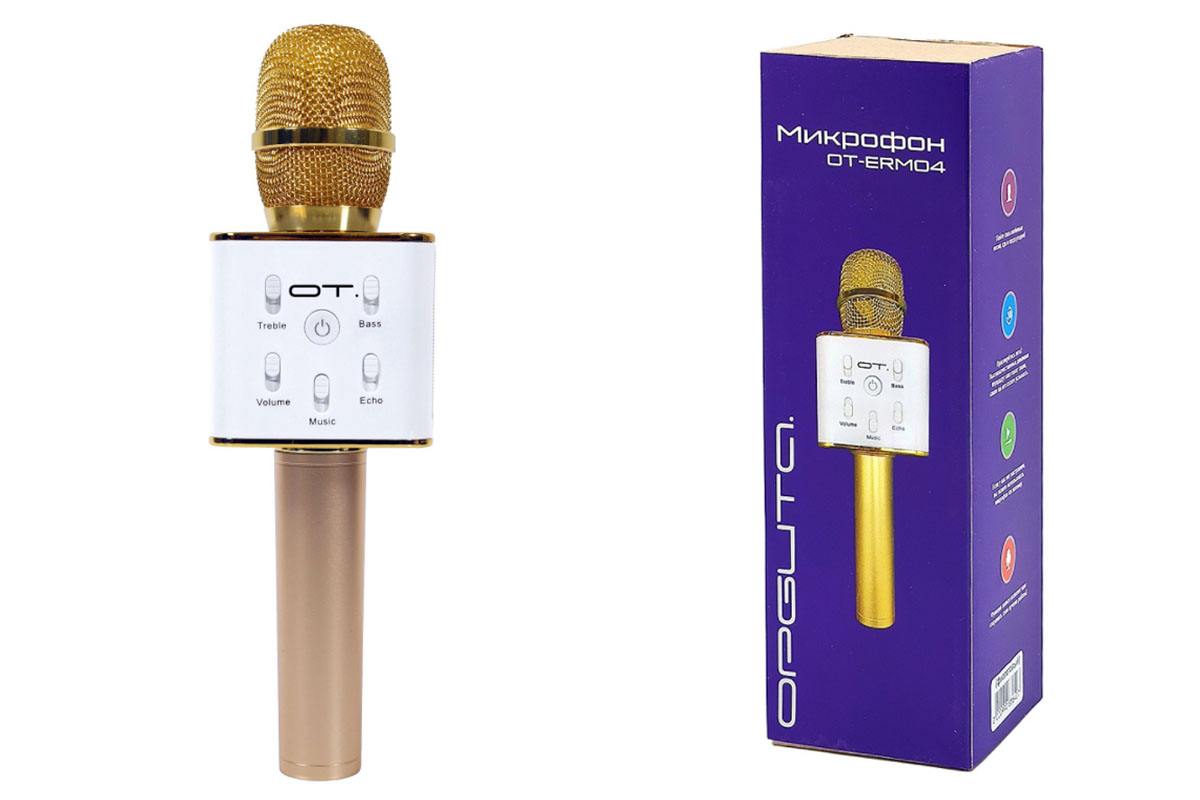 Купить Микрофон для караоке c беспроводной колонкой OT-ERM04 (Bluetooth, microSD, USB) золотой в интернет-магазине Умно-Разумно