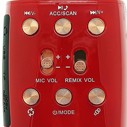 Беспроводной: да Цвет: красный Вес: 282г Размер: 210*63*48 мм Материал: пластик Комплектация: кабель microUSB, аудио кабель (J3.5мм), инструкция на Английском Беспроводное соединение: Bluetooth 5.0+EDR Протокол AVRCP, A2DP, HSP / HFP Частотный диапазон: 100Гц-10КГц Выходная мощность динамика: 5Вт Светодиодная подсветка: есть FM радио: 88-108 МГц Функция изменения голоса (модуляция голоса, 4 варианта): есть Функция реверберации(ECHO): есть Дополнительный функции: TWS - возможность сопряжения двух микрофонов между собой Питание: литиевый аккумулятор Емкость аккумулятора: 1200 мАч до 3 работы Напряжение зарядки: DC 5В Интерфейсы: Micro USB (ЗУ) / AUX 3.5мм / TF до 32Гб / USB до 32Гб Подходит для Android и iOS