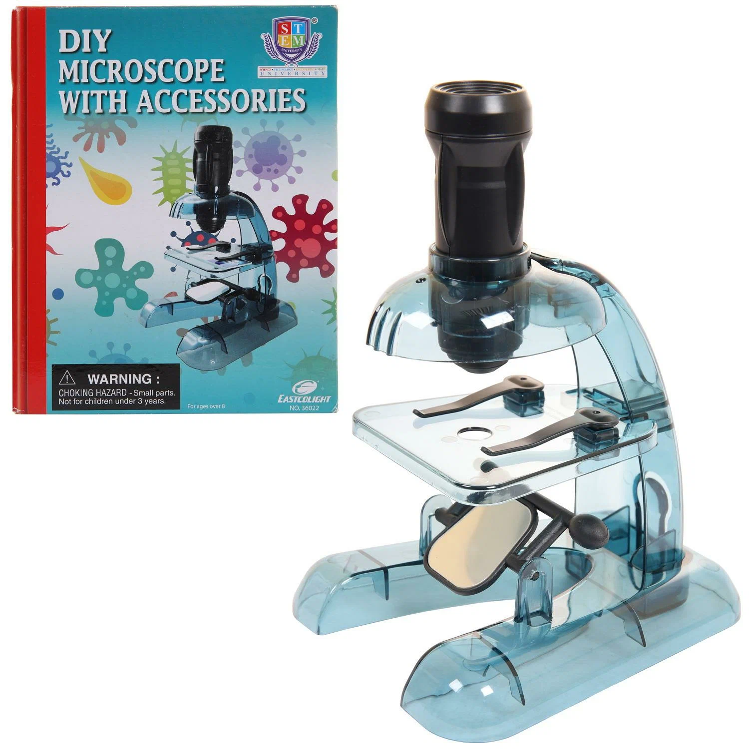 Компания Estcolight представляет новую линию DIY образовательных наборов серии STEM University, которые помогут вашему ребенку открыть новые грани окружающего мира. Высококачественная оптика дает четкое изображение под любым углом. Легко собрать, легко понять и научиться. Оригинальные комплекты для исследований на природе и открытий дома.Набор для сборки микроскопаВ комплекте: 1 труба микроскопа, 1 штатив, 1 основание, 1 зеркало, 1 столик с 2 зажимами, 1 пробирка для образцов, 4 предметных стеклышка, 6 покровных стеклышек, 6 стикеров, руководство пользователя на русском языке. Комплектация: Микроскоп, пробирка, стекло, 6 стикеров, инструкция