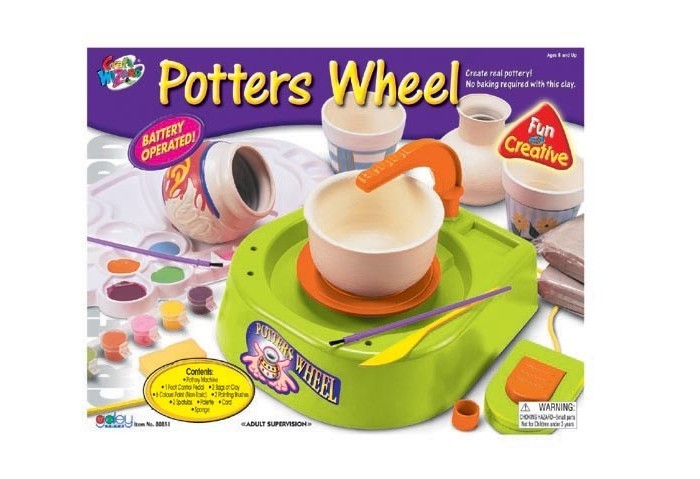 5+.С помощью этого набора вы с головой окунётесь в процесс создания глиняной посуды от формирования чаши вашего изделия до раскраски, ведь с гончарным кругом Galley это сделать не только легко, но и увлекательно. Следуйте простым советам из красочной инструкции и вы, наверняка, добьётесь потрясающего результата. Набор состоит: Гончарного круга, работающего от батареек Педали ножного управления 2-х мешочков с глиной 6-и (нетоксичных) цветных красок для раскраски вашего изделия 2-х Кистей 2-х Лопаточек (Стека) Палитры Шнурка Губки Инструкции