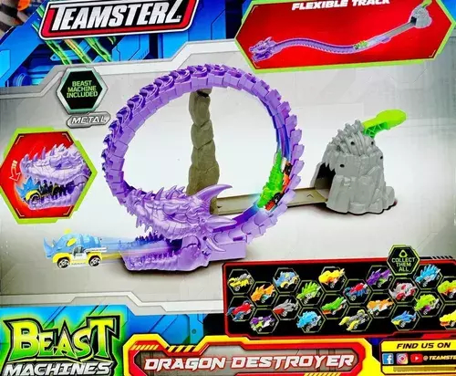 Увлекательный набор от Teamsterz «Трек-петля дракон» порадует юного любителя гонок своим дизайном и функционалом. Пусковой механизм отправляет машинку-тигра прямо из пасти огромного дракона! Трек имеет отлично проработанные детали, которые погрузят ребенка в мир творческих и захватывающих игр. Трек выполнен в виде дракона в ярко-фиолетовом цвете; Машинка содержит металлические элементы; Трек мобилен – его можно разложить в прямую линию или оставить в виде кольца; Машинка-тигр имеет оригинальный дизайн и быстро проезжает по треку; Игрушка изготовлена из качественных материалов; Рекомендованный возраст: 3+