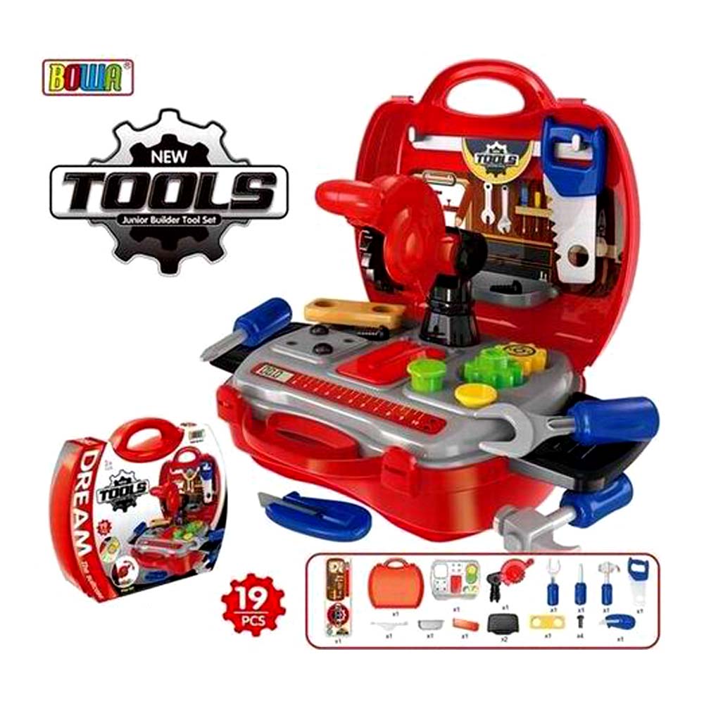 3+.Набор игровой Маленькая мастерская является крутым сейфом с необходимым инструментарием. Пила, шлифовальная машинка, разводной гаечный ключ, гайки и болты и еще много другого спрятано в этом чудесном чемоданчике. В кейсе с ручкой удобно хранить все игровые аксессуары, а также он служит полноценным рабочим местом мастера. Игровой набор состоит из 19 предметов (в том числе наклейки и сам чемоданчик).