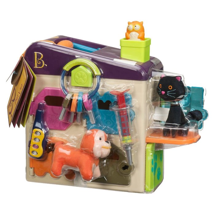 Игровой Ветеринарный набор - медицинский чемоданчик в виде ветеринарной клиники с четырьмя отдельными палатами. Каждая цветная дверка открывается и закрывается своим ключиком.Маленький доктор сможет проявить заботу к своим мягким пациентам и полечить их. Ребенок может померить температуру своим игрушечным друзьям, послушать, сделать прививку. Сюжетно-ролевые игры прекрасно развивают фантазию и воображение ребенка, а также мелкую и крупную моторику.