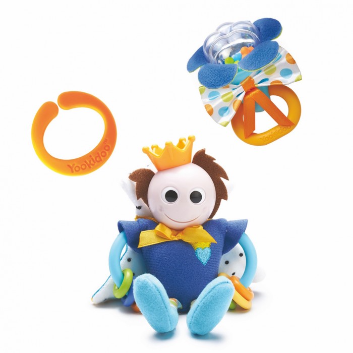 Игрушка Yookidoo "Принц" выполнена в красочном дизайне, который обязательно понравится малышу. Ребенок будет с удовольствием рассматривать очень забавную игрушку. Принц сделан из материалов различной текстуры, что позволяет тренировать мелкую моторику пальчиков и развивает тактильные ощущения. К игрушке крепится прорезыватель со множеством разноцветных колечек. Он непременно понадобится крохе в период прорезывания первых зубок. Дополнительно в комплект входит погремушка в виде колокольчика. Мягкий материал и разнообразные детали способствуют развитию мелкой моторики пальчиков рук и тактильных ощущений малыша, стимулируют развитие органов зрения, слуха, координации взгляда и движения рук, создают условия для эмоционального и социального развития. Колечко позволяет зафиксировать игрушку практически на любой мебели.