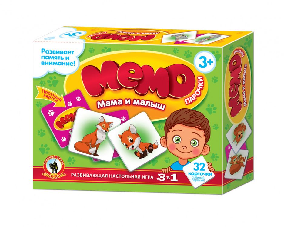 Мемо-парочки – увлекательная и полезная игра для детей. Малыш познакомится с многообразием животного мира; потренирует внимание и зрительную память. В комплекте 16 пар карточек: на одной карточке изображено взрослое животное; на второй – его детёныш. Игра научит ребёнка находить маму и её детёныша. Забавные животные; изображённые на карточках; сделают игру интересной и весёлой. Малышу точно понравится!