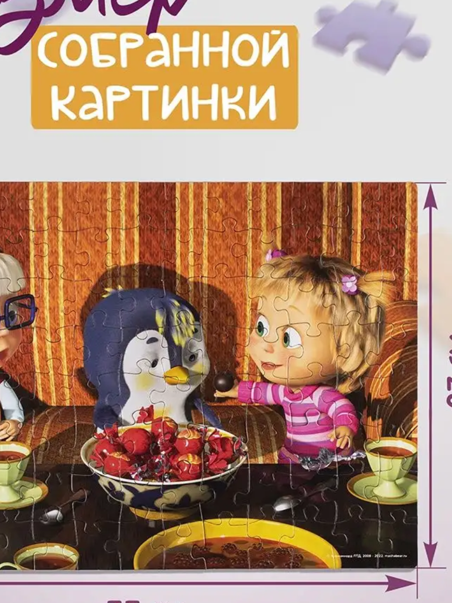 5+.Главная героиня мультфильма "Маша и медведь" никогда не сидит без дела. На этот раз она задумала устроить чаепитие вместе с Пингвиненком и Дашей. Размер собранной картинки - 33 х 23 см. Размер одной детали - 3 х 2,3 см. Пазл подойдет для детей от 5 лет. Герои: Маша и Медведь Даша Заяц волки белка Пазлы от Step Puzzle - это игры для детей от 3 лет (они также подойдут малышам, которым 3 года и 4 года). Мозаика станет отличным подарком для ребенка любого возраста, для мальчика и для девочки.