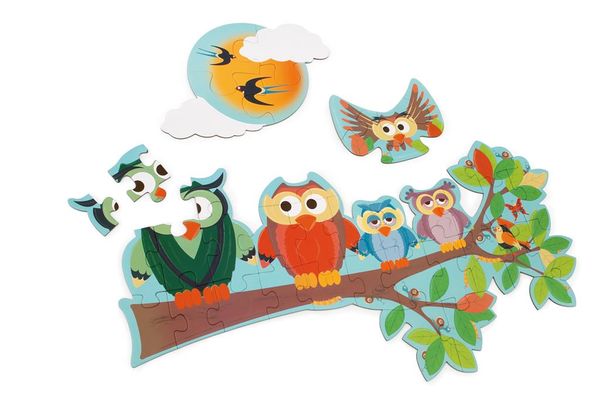 Эта красивая головоломка с милой совиной семьей очень универсальна! Она состоит из 1 большой головоломки и 2 небольших пазлов, которые все объединяются в веселую тему. Если вы перевернете пазл, вы сможете сделать еще 3 головоломки. С одной стороны, вы можете увидеть семейство сов в течение дня. Если вы перевернете кусочки пазла, то ночью увидите совиное семейство. Подходит для детей в возрасте от 4 лет и старше. Комплектация: 29 элементов пазла. При производстве используются только безопасные и экологически чистые материалы: картон, дерево, краски на водной основе. Товар сертифицирован и безопасен в использовании. Игра рекомендована в качестве обучающего игрового пособия для детских дошкольных учреждений. Производство: Бельгия