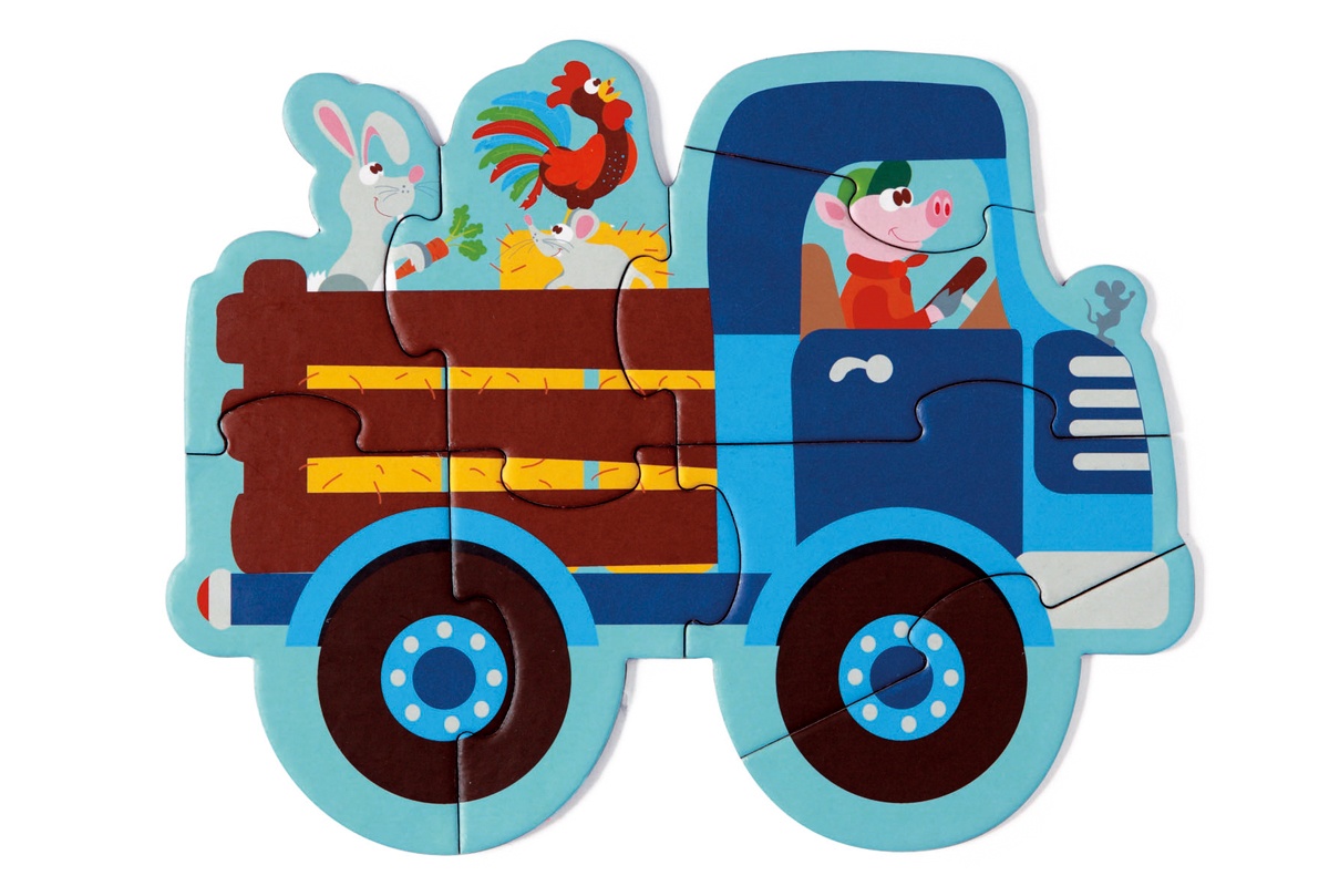 Возраст От 3 до 5 лет.Пазл с крупными частями отлично подойдет для самых маленьких. Зайчик, павлин, петушок, грузовик и трактор собрались в одной красочной коробке. Пазл и коробка выполнены из сверхпрочного ламинированного картона.