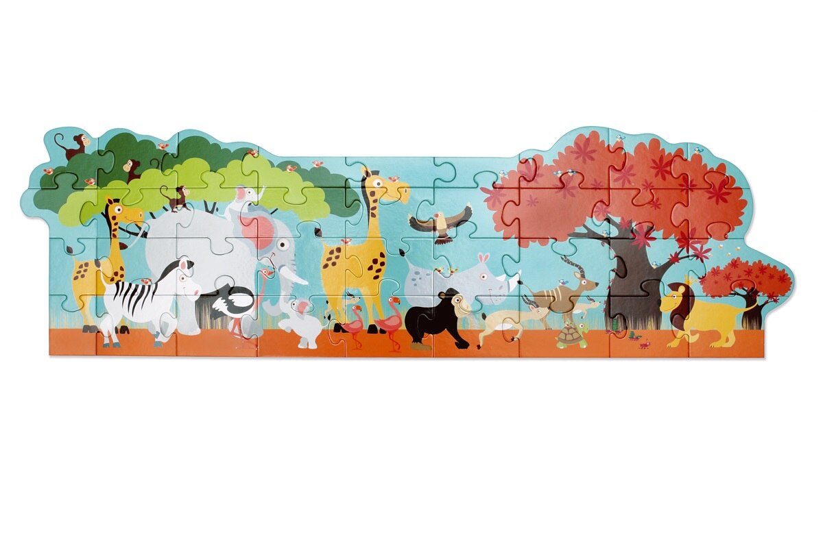 Соберите вместе все 36 кусочков головоломки один за другим и откройте для себя диких животных джунглей с помощью этой удивительно подробной головоломки с нуля! Вам удалось завершить головоломку? Тогда пришло время для приключений, когда вы отправляетесь на сафари в жаркую саванну. Эта гигантская головоломка размером 100х33 см может быть собрана по кусочкам на полу или столе и подходит для любителей пазлов в возрасте от 3 лет и старше. При производстве используются только безопасные и экологически чистые материалы: картон, дерево, краски на водной основе. Товар сертифицирован и безопасен в использовании. Игра рекомендована в качестве обучающего игрового пособия для детских дошкольных учреждений. Производство: Бельгия